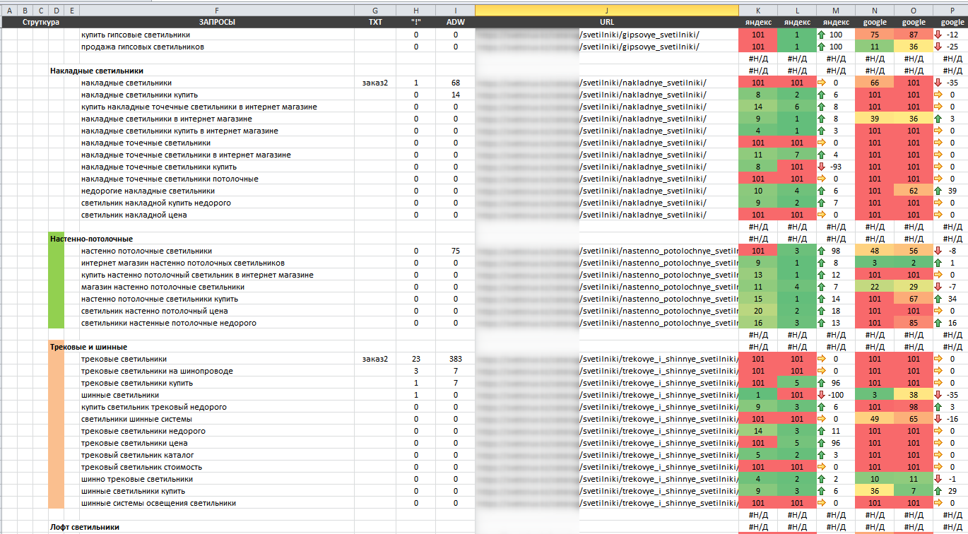 Полученные данные желательно перепроверить вручную и разбить по смысловым группам. Впоследствии это поможет улучшить и скорректировать структуру путём добавления дополнительных посадочных страниц.